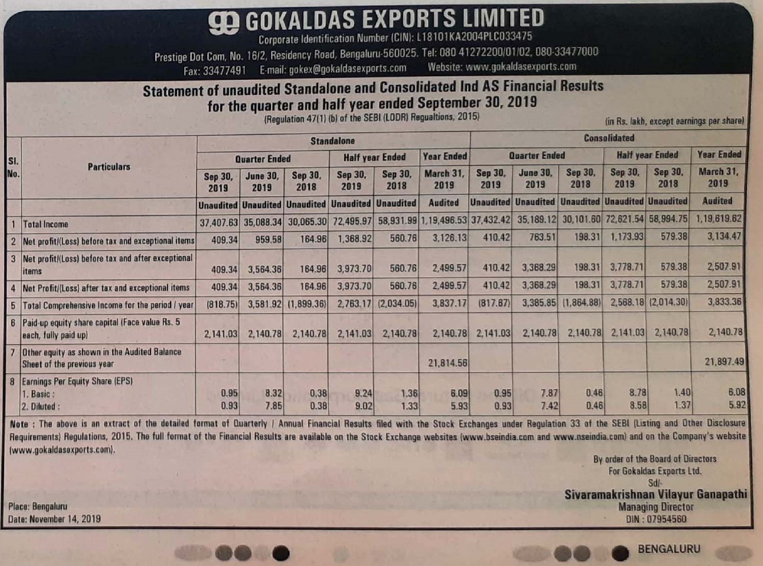 | Q2 - Financial Result-Press Release FY 2019 - 20 | Download |